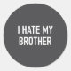 I Hate My Brother, Funny, Jokes, Sarcastic Classic Round Sticker