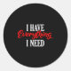 I Have Everything I Need Valentine´s Day Love Coup Classic Round Sticker