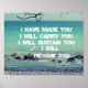 I have made you; I will carry you Bible Verse Posters and Prints. Beautiful aqua ocean background (with retro filter) with the inspirational, comforting and encouraging scripture from Isaiah 46.4. I have made you; I will carry you; I will sustain you and I will rescue you. Inspirational faith quotes.