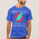 I give wanted to give this a 4 instead of a 5 because these Basic DARK T0shirts run unexpectedly SLIM or Narrow. Which is great if you do not have a potbelly, but I have a paunch. It isn't the shirt's fault that I've got a beer belly. The design and shirt itself is a quality cotton shirt. The color is more of a deep purple, but still a very pretty color. The Basic DARK T-shirts run a bit SLIMMER than the Basic Ts. The neck is a fraction narrower (or seems to be narrower) also. I'm a paunchy middle-aged woman and my neck is 12 inches (31cm) thick and the neckline fell about the same as in the photo of the man, and I had the desire to tug it a bit. So if you're a thick necked man or like loose shirts, be aware these are slimmer shirts. Once I get rid of my lockdown paunch it'll look great. The shirt washed well in cold water with no apparent bleeding. We don't have a dryer, so it hung dry. Did not shrink. Love the colors and the design. The design looks smaller on my shirt than it does on the model on-line. But still, it looks good on the shirt. The printing looks as it does on the model, just the size seems fractionally smaller. Washed garment in cold water, hung dry and design appeared unaffected.