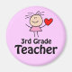 Third Grade magnet has cute stick figure teacher with red heart has 3rd Grade Teacher slogan. It's perfect for putting on the fridge or a metal file cabinet or a classroom chalkboard!