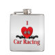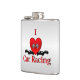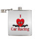 I Heart Car Racing Silver Hip Flask