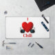 Nice design for the chilli lover. A heart with chilli pot on either side complete with a blue ribbon.