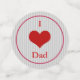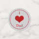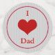 Pack of 60 small, medium and large pieces of confetti with an image, on both sides, of the phrase “I Heart Dad” printed in bold black letters with a big red heart substituting for the word “love” on grey pinstripes. Red border. See the entire Father’s Day Confetti collection in the DECOR | Confetti section.
