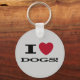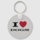 Black text and red heart design for dog lovers reads "I (heart) Dogs!" on I Heart Dogs T-shirts, bodysuits, mugs, cards, tote bags, keychains, and other dog lover apparel and gift items.