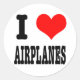I HEART (LOVE) AIRPLANES CLASSIC ROUND STICKER