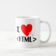I Heart (Love) HTML Mug. A mug with fully customisable text "I", love hearts "HTML". This cool geek nerd I love HTML mug is fully customisable, add your text and images. A great geeky gift for your computer HTML coding friend or family member!