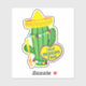 Fun sticker for Mexican food lovers featuring a cactus wearing a sombrero and holding a giant fork, for you to slap on your electronical doohickeys, luggage, ride, bottles, work or school supplies.