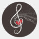 I HEART MUSIC Treble Clef Black Custom Classic Round Sticker