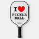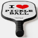 I heart pickleball paddle with personalised name or monogram. Cool Holiday or Birthday gift idea for pickleball lovers. Create unique paddles for pickleball player, pickler, fan, sports coach, team, mum, dad, friend, husband, wife, boyfriend, girlfriend, coworker etc. Personalise with your own text. Professional quality athletic game rackets for sporty men and women. White, tan or black grip / trim options. Fun design for him or her.