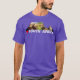 I give wanted to give this a 4 instead of a 5 because these Basic DARK T0shirts run unexpectedly SLIM or Narrow. Which is great if you do not have a potbelly, but I have a paunch. It isn't the shirt's fault that I've got a beer belly. The design and shirt itself is a quality cotton shirt. The color is more of a deep purple, but still a very pretty color. The Basic DARK T-shirts run a bit SLIMMER than the Basic Ts. The neck is a fraction narrower (or seems to be narrower) also. I'm a paunchy middle-aged woman and my neck is 12 inches (31cm) thick and the neckline fell about the same as in the photo of the man, and I had the desire to tug it a bit. So if you're a thick necked man or like loose shirts, be aware these are slimmer shirts. Once I get rid of my lockdown paunch it'll look great. The shirt washed well in cold water with no apparent bleeding. We don't have a dryer, so it hung dry. Did not shrink. Love the colors and the design. The design looks smaller on my shirt than it does on the model on-line. But still, it looks good on the shirt. The printing looks as it does on the model, just the size seems fractionally smaller. Washed garment in cold water, hung dry and design appeared unaffected.