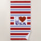 This roomy beach towel features my "I Heart The USA" logo, on a background of patriotic red, white and blue stripes.