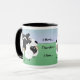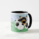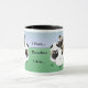 Caption reads, "I Herd... Therefore I Am...", featuring a Tri-Colour Smooth Collie surrounded by his flock of sheep. The back of the mug also has a mirror image view of what appears on the front, showing the rear end of the Smooth Collie and his Sheep.