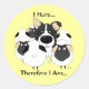 A big nosed Border Collie surrounded by sheep with the words I Herd....Therefore I am. Background Colours can be changed. Just click on Customise It button.