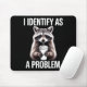 I Identify As A Problem Funny Raccoon Humor Sarcas Mouse Mat