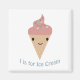 I is for ice cream. Cute kawaii ice cream cone.