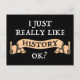 I Just Really Like History, OK? A funny vintage history-themed Christmas or birthday gift for history lovers, history buffs, history students, history majors, historians, history nerds, history geeks, and history teachers and professors. Are you a history buff? Are you crazy about history and love to talk about it? If you love historical fiction, books, movies, or reading about history, this funny history humour design is for you! Design features vintage old-looking font.