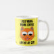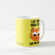 This humourous cat lover mug features a smiling orange cat face with the saying - "I JUST WANNA DRINK COFFEE AND PET MY CAT!" Background colour is bright and sunny yellow!