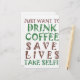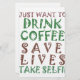 Embrace the joy of coffee, compassion, and fun with our “Sip, Save, Smile: Coffee, Kindness, and Selfies” design. This vibrant artwork features the playful text: “I Just Want to Drink Coffee, Save Lives, and Take Selfies.” It captures a lighthearted spirit, perfect for coffee lovers and those who enjoy spreading kindness and positivity.