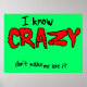 I Know Crazy Funny Poster Humor