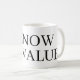 I know my value coffee mug gift. Modern cup with big letters. Personalize with your own text. Funny gift idea for friend, girlfriend, boss, coworker, colleague etc.