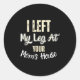 I Left My Leg At Your Mom's House Funny Quote Classic Round Sticker