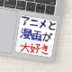 Do you like anime and manga? Then this is the perfect sticker! In Japanese, you don't usually say pronouns, so translated literally, it is more like "love anime and manga".