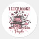 Vibrant, colourful design featuring a stack of books with flowers, butterflies and mushroom. The colourful text reads: "I like books more than I like people". This design is available on a wide variety of products.