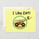 A yellow front end loader and text that reads "I Like Dirt!" on construction design T-shirts, mugs, cards, hoodies, bodysuits, keychains, tote bags, and other front end loader apparel and gifts.