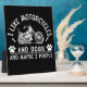 I LIKE MOTORCYCLE AND DOG AND MAYBE 3 PEOPLE PLAQUE