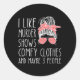 I like murder shows comfy clothes and maybe 3 peop classic round sticker