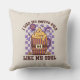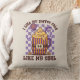 Sip in spooky style with this cheeky Halloween throw pillow featuring the phrase “I Like My Coffee Cold, Like My Soul.” A pumpkin spice mug in orange and purple vertical stripes pops against a white and purple chequered background, blending cold brew vibes with witchy flair. Perfect for those who prefer their coffee chilled—and their humour delightfully dark.