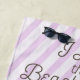 'I Like the Beach Alotl’ Boba Tea Axolotl Purple Beach Towels make the perfect present, great gifts or fun giveaways for girls birthday having a themed axolotl, boba tea beach or pool par-tea. Your own personalised name surrounded by adorable stripes, cute salamander, bubble and fun boba for some fun summertime time at the sea!