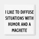 For the sarcasm lover in all of us. Check out this witty “I Like to Diffuse Situations with Humour and a Machete” design on apparel and gifts.