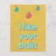 I like you balls postcard