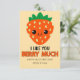 This adorable kids Valentine’s Day card features a large kawaii strawberry character paired with the sweet phrase “I Like You Berry Much” in playful, cheerful typography. Designed with bright colors and a fun, friendly style, this flat Valentine card is perfect for classroom exchanges, school parties, or passing out to friends. The charming strawberry illustration and whimsical lettering make it a delightful choice for kids who love cute, happy designs that feel extra special on Valentine’s Day.