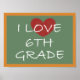 This poster displays the text "I Love 6th Grade" on a chalkboard background. This is a great item for sixth grade teachers to hang in their classrooms.