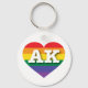 This keychain features a heart with a rainbow pride design and the letters AK. Atop the stripes, within the heart are the bold, white, capital letters AK, the official abbreviation for Alaska, the last frontier. Show your true colors, support marriage equality, and celebrate gay pride.