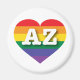 This magnet features a heart with a rainbow pride design and the bold, white, capital letters AZ, the official abbreviation for Arizona, the Grand Canyon state. Show your true colors, support marriage equality, and celebrate gay pride.