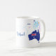 Coffee Mug Trendy Design. "I LOVE AUSTRALIA" collection. "Bon Voyage!" "Michael" Lettering. Happy Australia Day 26th January, Australian Flag, Australia Map, Heart, stars & fireworks. Lovely Australia. Patriotic National Holiday Festive Poster for gifts design.