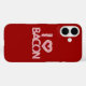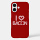 I heart bacon saying with letters created from bacon strips. Custom background colour.