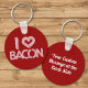 Bacon saying with letters created from bacon strips. Custom background colour. Custom text at the back side.