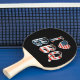 Overall, it's a nice product but for what you pay the quality isn't very good. The way it's glued together, as you can see in the pictures, is messy, the glue is visible and shiny, there's some ink staining that looks like black fluff but isn't, it won't come off. On the paddle's black surface there are also little white marks here and there. It's not too easy to show in the pictures because of the flash but I tried to showcase the little white blemishes that ruin a smooth black surface. This was meant to be a gift and it just looks sloppily put together unfortunately. A few imperfections that mar what could have been really great. The printing was neat.
