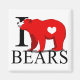Instead of the ordinary design of "I Heart Bears”, the 'Heart' is changed to a striking illustration of a red bear. A bit of trivia: Experts opine if attacked by a Grizzly bear, one should play dead rather than sprinting away from the animal. Once convinced that one is not a particular threat in any way, the bear may just leave you unharmed.