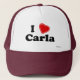 I love Carla! Is your name Carla? Do you have a husband, boyfriend, male family member or male friend who you know loves you? Or do you have a wife, girlfriend, female family member or female friend named Carla whom you love deeply? If so, this "I Love" hat is exactly the gift that you're looking for! The design features the letter "I" in black lettering with a red heart on the top and "Carla" in black lettering on the bottom.