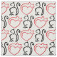 I Love Cats! (Black and Red Outlines on White) Fabric