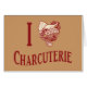 Charcuterie is a term in French food describing preserved meats. A perfect gift for a gourmet or food lover, these graphic tees and other items have the expression "I heart charcutrie", with the heart formed of sausages, ham, terrines and other preserved meat