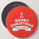 Eye-Catching Design: The combination of the red background and white text makes this button a striking accessory for holiday gatherings.