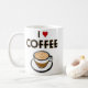 "I Love Coffee" design features a foam-topped latte and art deco typeface in bold for an extra punch. Makes a great gift for all the coffee connoisseurs in your life and those who love this caffeinated beverage.