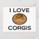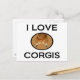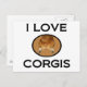A cute round circle featuring a photograph of a cute little corgi bunny butt and her legs outstretched behind her with the words I LOVE CORGIS. Corgi owners, mum and dads alike will like this pretty corgi gift.